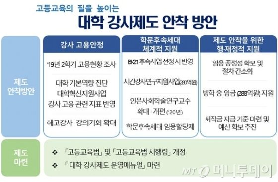 이와 함께 교육부는 학문 후속세대 임용할당제, 임용절차의 공정성 제고 및 간소화 방안 등 강사 제도 운영 요령을 담고 있는 '대학 강사제도 운영 매뉴얼'도 함께 배포했다.