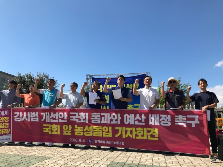 비정규직 교수들 농성, 강사법 개선안 즉각 입법 요구